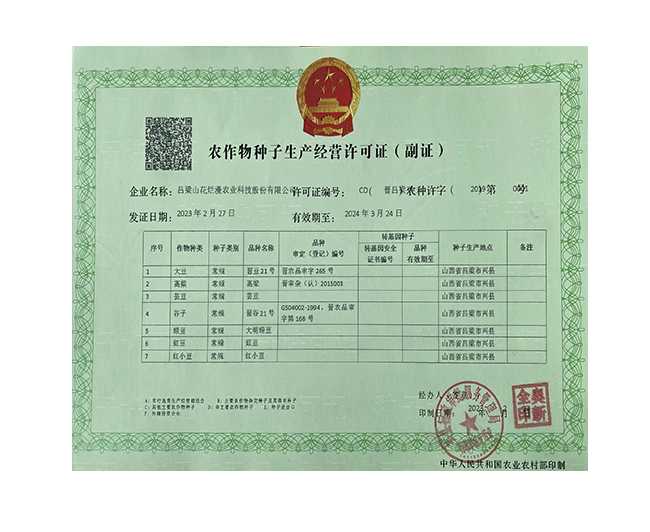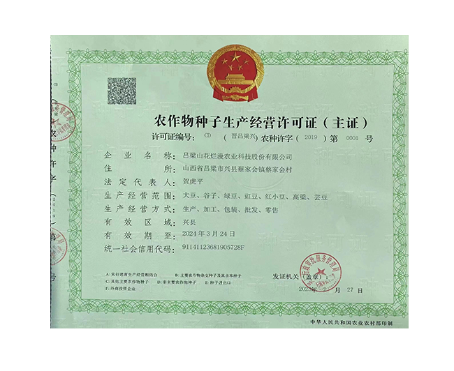 呂梁山花爛漫農(nóng)業(yè)科技股份有限公司是山西省農(nóng)業(yè)產(chǎn)業(yè)化重點(diǎn)龍頭企業(yè),公司成立于2008年,法人代表賀虎平,注冊(cè)資本1000 萬(wàn)元,現(xiàn)有員工 30 人。公司位于興縣蔡家會(huì)鎮(zhèn)蔡家會(huì)村建有占地面積1萬(wàn)多平方米生產(chǎn)區(qū)和辦公區(qū),年總加工雜糧能力達(dá)到4萬(wàn)噸。擁有一套日精加工50噸谷子成套設(shè)備生產(chǎn)流水線;擁有一套日精加工30噸豆面、蕎面設(shè)備流水生產(chǎn)線;擁有一套日精加工50噸紅小豆、豇豆、綠豆、腎型黃豆、紅蕓豆設(shè)備流水生產(chǎn)線,2020年引進(jìn)省農(nóng)科院農(nóng)產(chǎn)品加工研究所谷子精深加工技術(shù),目前設(shè)計(jì)年產(chǎn)300噸的小米油加工一條龍生產(chǎn)線已經(jīng)安裝調(diào)試完畢,產(chǎn)品經(jīng)化驗(yàn)達(dá)到國(guó)家一級(jí)油標(biāo)準(zhǔn),并獲得兩項(xiàng)專利證書。主要產(chǎn)品有“山花爛漫”牌有機(jī)小米、綠色小米各種精美包裝系列;蔡家會(huì)村豇豆面、豌豆面等雜糧面、手搟豆面系列、以及有機(jī)精品雜糧系列。擁有“山花爛漫”山西省著名商標(biāo)。公司采用線下和線上銷售相結(jié)合的營(yíng)銷模式。